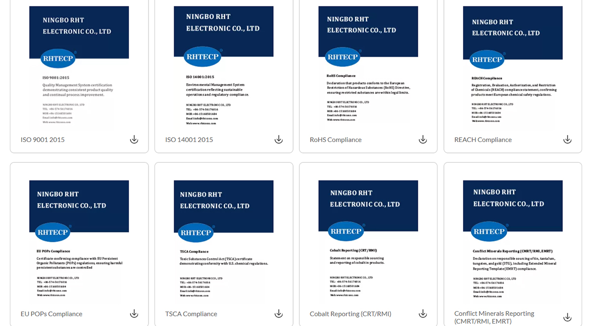 At RHT ECP (www.rhtecp.com), we are committed to delivering high-quality electronic components that meet the strictest international standards. Our dedication to excellence is reflected in our comprehensive certifications, ensuring that every product you receive is safe, reliable, and compliant with global regulations.