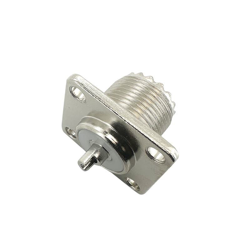 -Threaded Coupling: The UHF chassis jack uses a threaded coupling mechanism, which allows it to securely connect to a mating UHF plug. The threads provide a strong and stable connection suitable for applications where vibration or movement might occur.