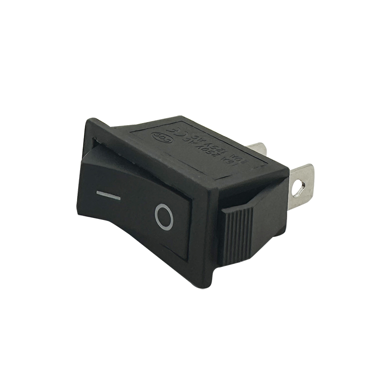 -The rocker switch operates with a simple pressing action, typically rocking back and forth to toggle between on and off states.
